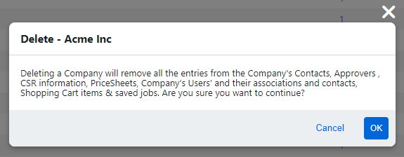 The Companies page is used to add, remove, or update information about companies whose members place orders through the system. You can assign the company to a storefront and customize the storefront (see Customizing Storefronts) so that a specific branding appears on the web site when a company user logs in, add contact information and assign employee users to default groups, price sheets, and billing units for their associated company. You can also edit and delete companies.