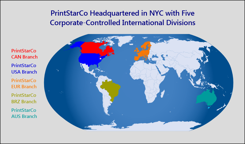 based in New York City has three 5 subsidiary branches--USA, Canada,