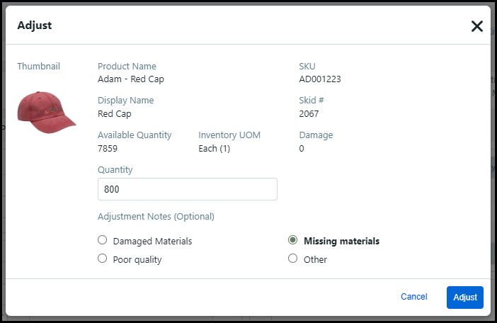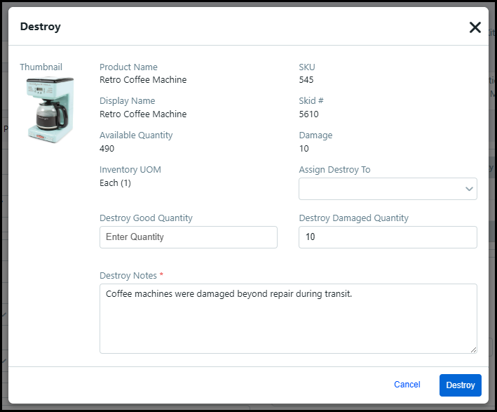 6 Enter the Damage Quantity and / or Good Quantity into the table to determine the number of damaged items to dispose and the number of good items to return to inventory.
