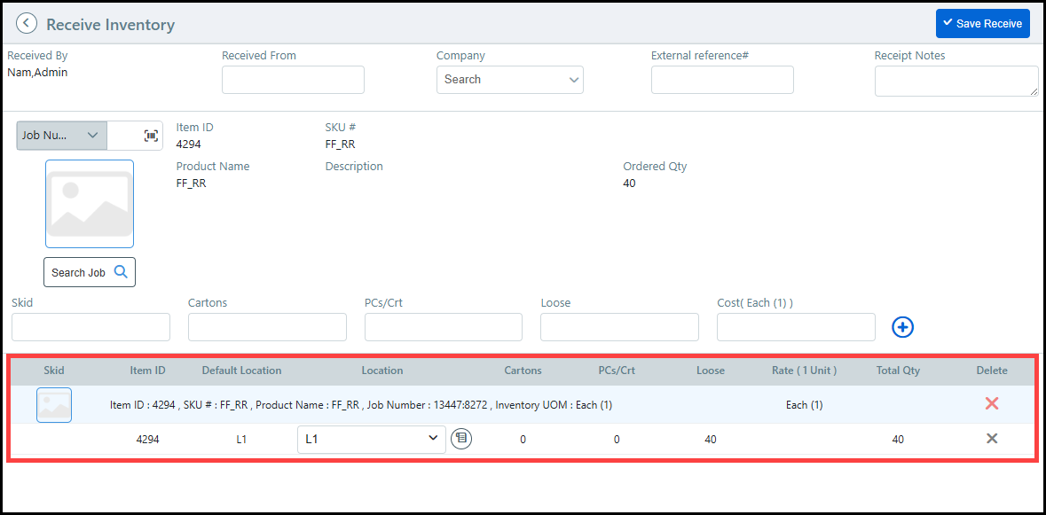 5 Select to either return the item(s) to the original Skid or a new Skid.