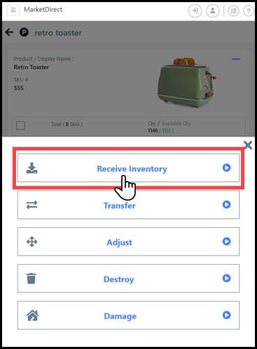 Mobile support for MarketDirect Fulfillment gives administrators the ability to manage and track inventory using their mobile phone or tablet. It is ideal for administrators who are on the warehouse floor, receiving inventory and picking orders to be shipped.