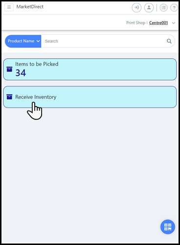● Tap the Receive Inventory option on the Mobile Fulfillment home page.