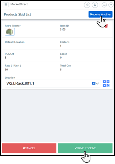 5 Either tap Save Receive to enter the items into inventory or tap Receive Another to start the process from the Receive Inventory page.