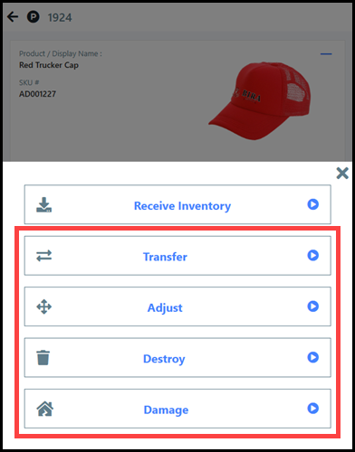 You can transfer, adjust, damage, and destroy inventory using Mobile Fulfillment by finding the appropriate item using the Global Search or by scanning an item's barcode.
