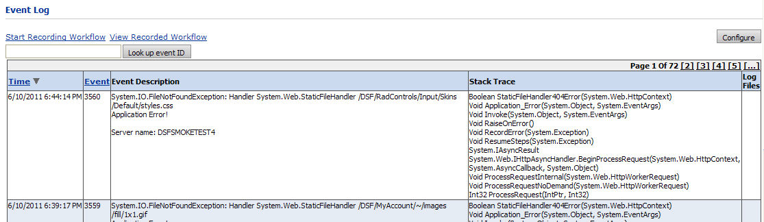 ● On Exception Only: This option will provide information (such as links to log files) to assist in troubleshooting a problem (exception) and the web site will collect additional information that may be relevant to errors. This information will be displayed as files on the Event Log page. The error log files will be stored in the folder x:\\dssfiles\uploads\supportlogs (where x: is the drive letter where MarketDirect StoreFront is installed on your MarketDirect StoreFront server). This is the level for ePS TechnicalSupport.