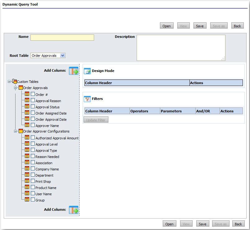 4 From the Root Table pull-down menu, select "Order Approvals."