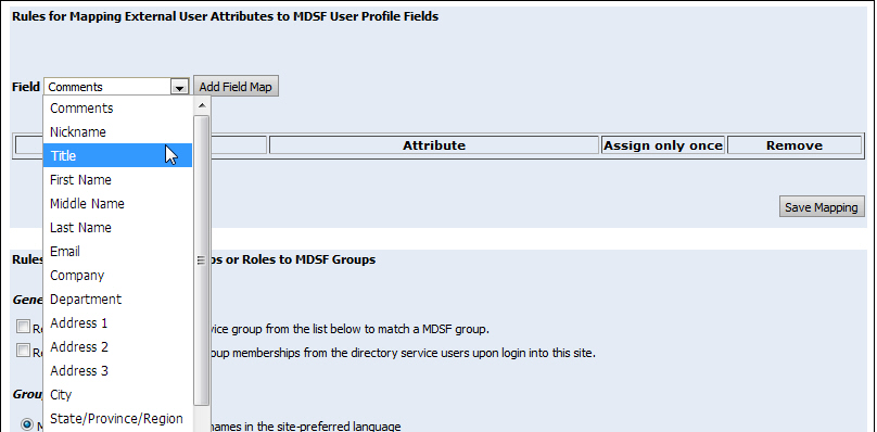 6 In the Rules for Mapping External User Attributes to MDSF User Profile Fields section: