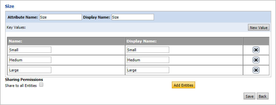 You can skip this step if all attributes you want to offer as variants of the product are already defined. The image below shows a Manage Product Filtering Metadata page with a number of attributes (keys and key values) defined.