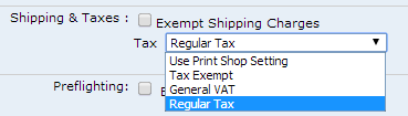 Available options will include Use Print Shop Setting, Tax Exempt, and the various tax rates you defined on the Print Shop page.