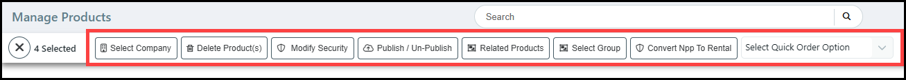 3 From the bulk operation panel, select the bulk operation you want to perform on the selected product(s).