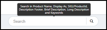 The Global Search bar can filter products by referencing multiple product fields at the same time. Enter a term from one of the searchable fields into the search bar and click the magnifying glass icon. For more information on the Global Search bar, see Search and sort data. |