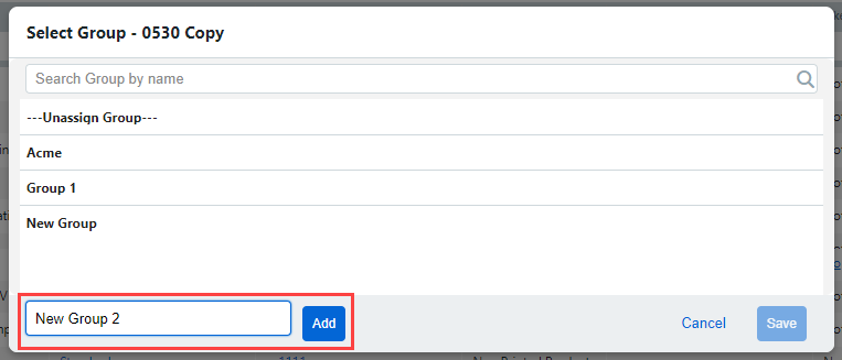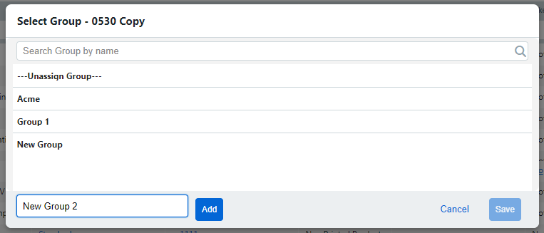 ● Select Group: This operation lets you either associate all selected products with a specified pricing group or remove the pricing group association for all selected companies.