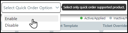 ● Enable / Diable Quick Order: This operation allows you to enable or disable multiple ad-hoc or static products for quick order.