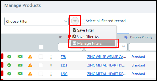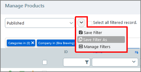1 Apply all filters on the data to isolate the subset of products for bulk processing.