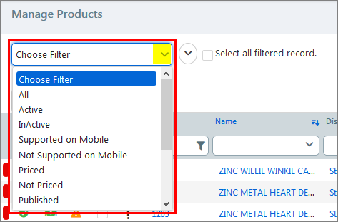 Whether the product has a fixed priced assigned to it. To filter on this attribute: In the column header field, select an option from the drop-down list: Yes, No, Not applicable You can set the view up to show pricing with an
