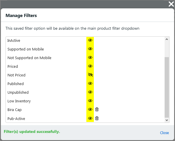● tools to save those sort and filter settings for later use and create as many custom filters and personalized views needed for various product workflows