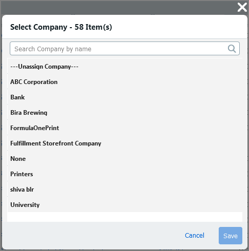 ● Select Company: This operation lets you either associate all selected products with a specified company or remove the company association for all selected companies.