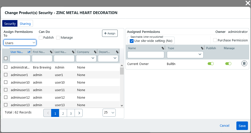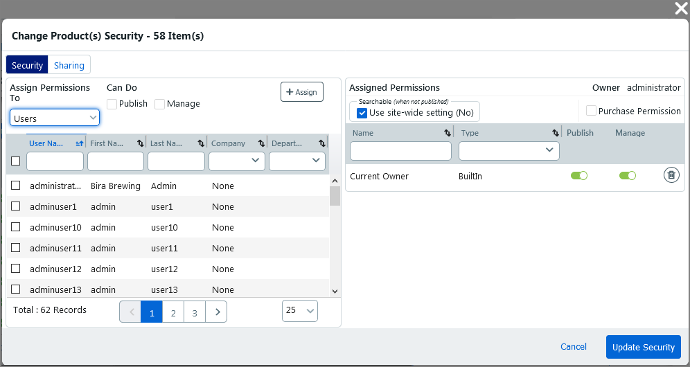 ● You can assign permissions for all selected products using the tools in the Change Product(s) Security window.