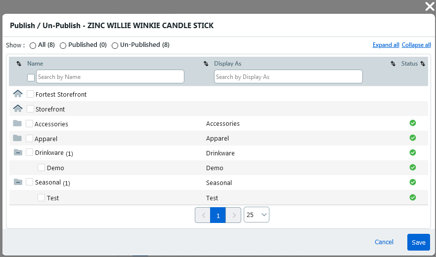 ● Select the category or categories to or from which you want to publish or un-publish the selected products.