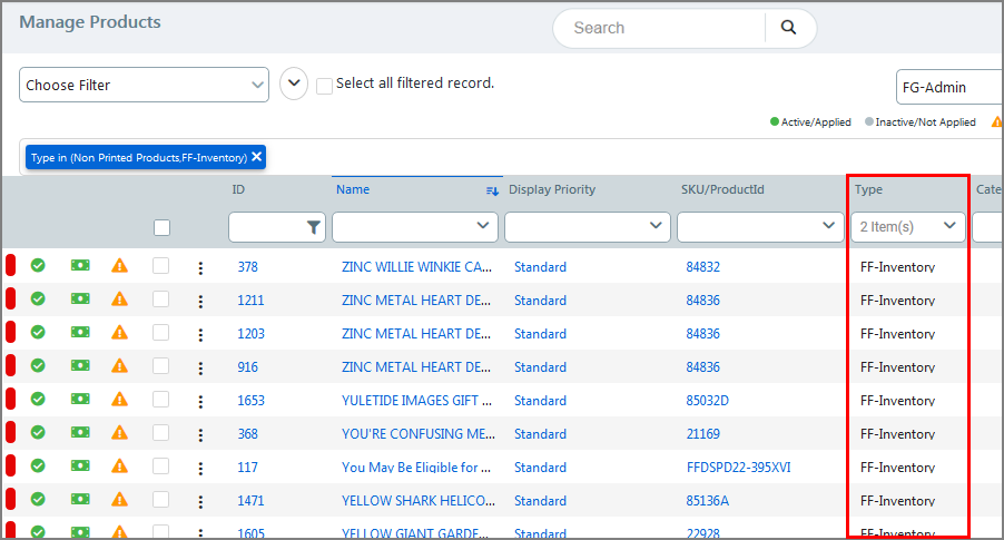 This is a licensed option. The FF-Inventory product type is available exclusively for sites licensed for the Fulfillment module . For more information on acquiring a license for the MarketDirect Fulfillment module, contact your ePS sales rep or reseller. For more information on MarketDirect Fulfillment, see the Fulfillment help topic.