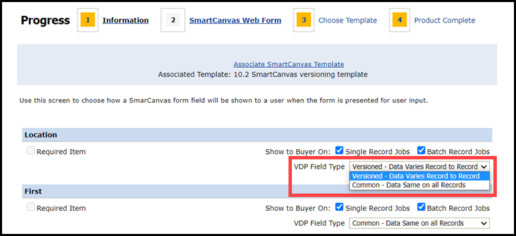 ● VDP Field Type: Specify whether the field type is Versioned or Common.