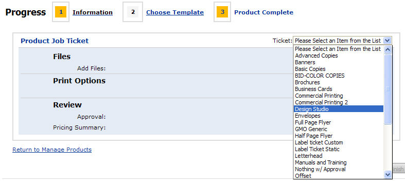1 On the Manage Design Templates page, click the radio button corresponding to the template that most closely resembles the design template you want to use as a starting point for the new design template you are creating.