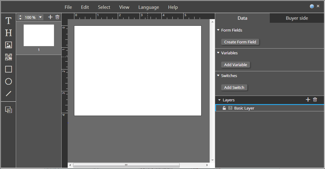 The table below is a guide to the main menu of the SmartCanvas template designer: