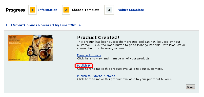 SmartCanvas is a Web-based (HTML5) product design tool that enables administrators within MarketDirect StoreFront to create templates for a variety of products such as greeting cards, flyers, business cards, brochures, stationery, and banners. SmartCanvas is a product type in MarketDirect StoreFront.