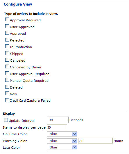 2 In the Type of orders to include in view section, check boxes for the types of orders (by status) to display on the Order View.