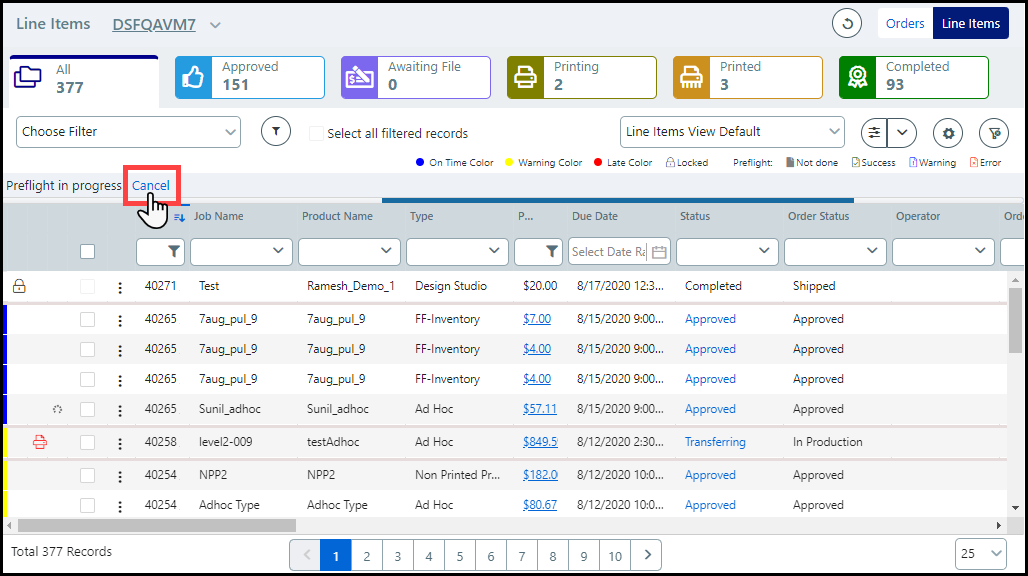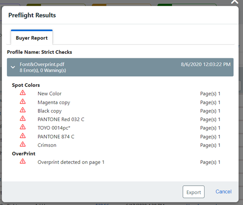 If preflighting is already enabled for the product, review the Preflight icon prior to submitting the job for production.