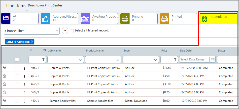 Price of the item (not total order price but the price of the line item). To filter on this attribute: ● In the column header field, enter a number to filter jobs that match the entered value exactly, or use any of the operators to broaden the results. ● Click |