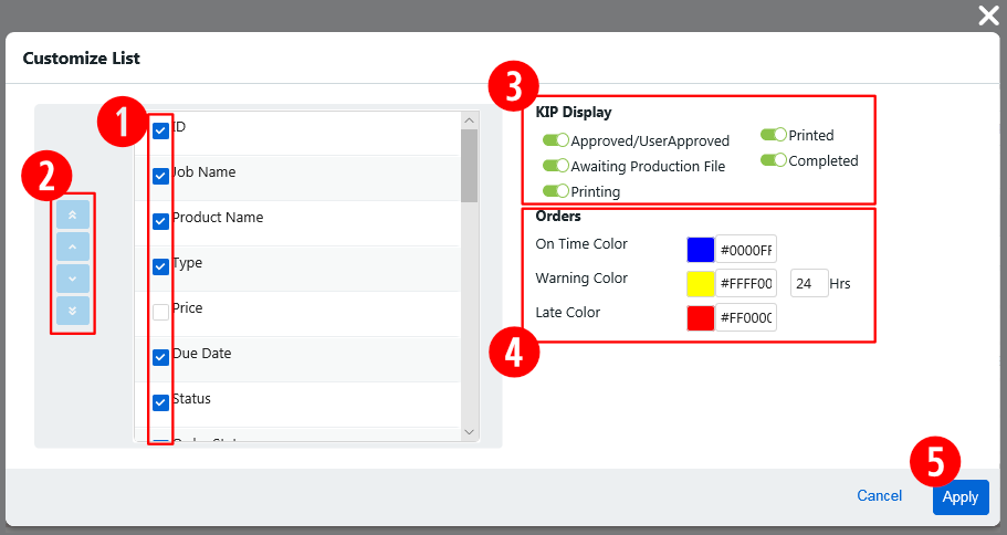 The KPI Display bar lets you toggle quickly between seeing all orders and orders only in the selected KPI (key performance indicator) statuses. |