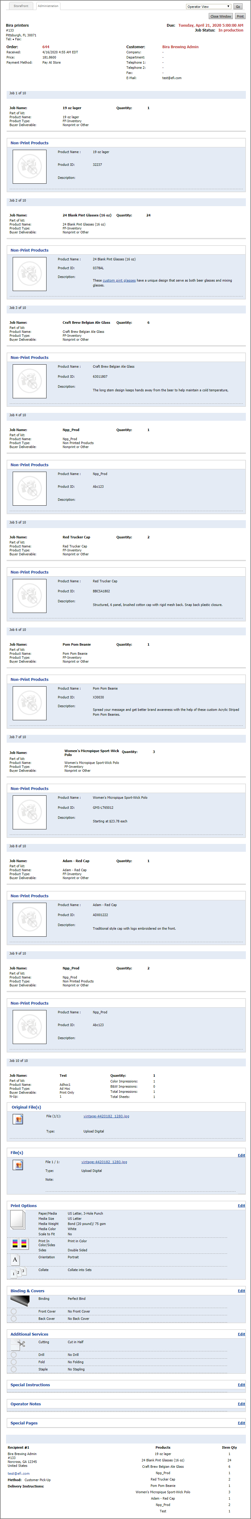 ● in-line editing tools to assign operator, output device, and operator notes for each job line item