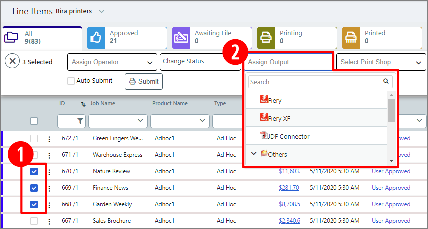 ● Select the Print Shop to which to assign the selected job(s).