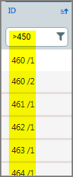 ● Numerical value data columns (e.g., ID, Order Qty, Total Pages, etc.) can be searched / filtered using operators. Any column with a filter can take value operators: