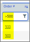 Order number. To filter on this attribute: ● In the column header field, enter a number or range of numbers. ● Click |