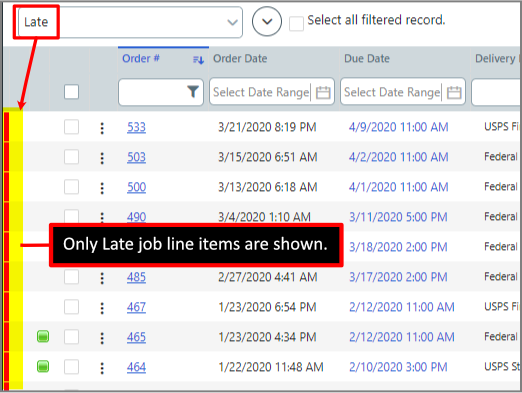 The system's filtering feature enables sophisticated filtering operations to drill down and isolate only those items that are relevant for a particular user or use. You can use the built-in global filters and create custom filters tailored to your job management workflow(s).