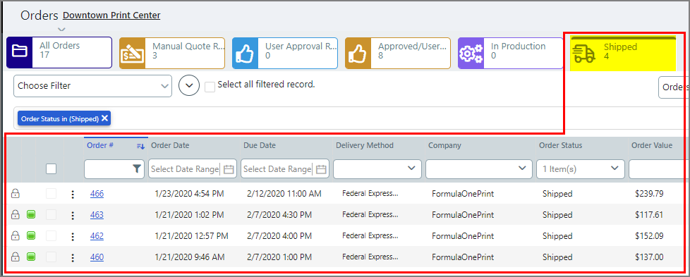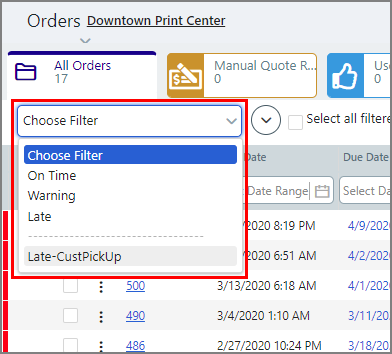 You can create as many custom filters as you need to suite your job management workflows and access them from the filters list as needed.