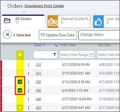 1 On the Order View, choose your Print Shop from the Print Shop pull-down list.