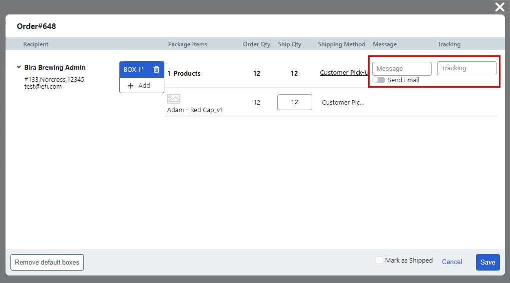 You can enter shipment tracking numbers that can be used to send tracking information for a shipment to an order recipient. You can enter multiple tracking numbers per shipment in cases where multiple packages are being shipped with separate tracking numbers assigned.